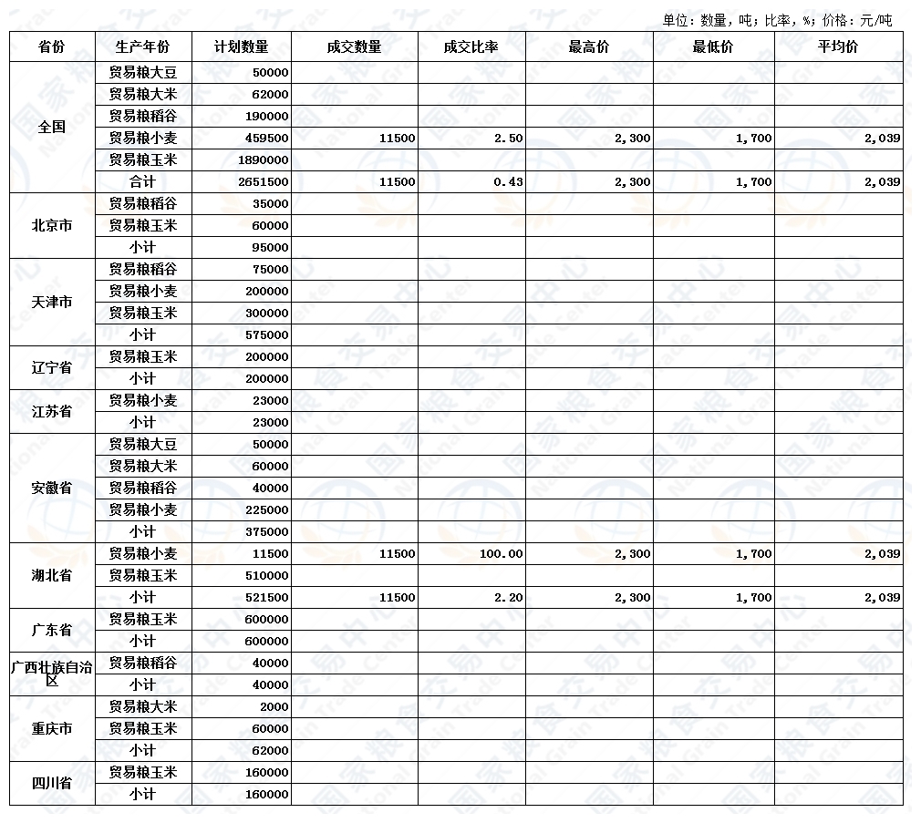 湖北粮网: 交易公告